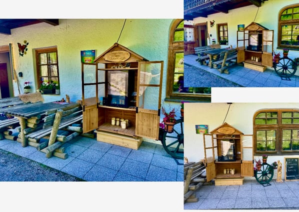 Bezahlung: An der Bar im Gasthof, sonst an der Kasse im Bauernladen.
